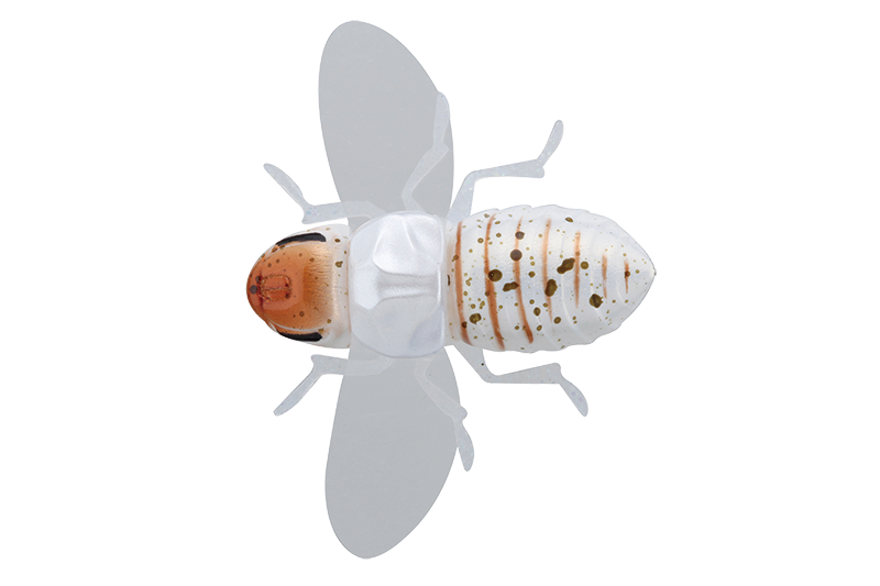 В комплект входят сменные крылышки и силиконовые лапки, которые усиливают реалистичность игры и делают приманку более заметной на поверхности. Благодаря продуманной форме Bug Dog обладает стабильными полетными характеристиками и хорошо подходит для ловли белого хищника.