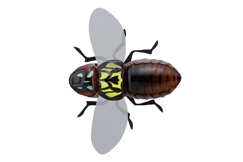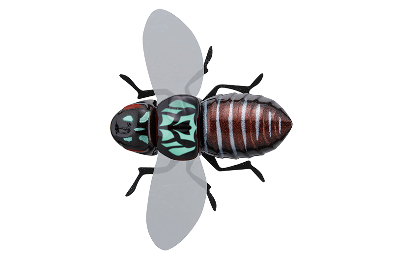Bug Dog — поверхностная приманка, созданная для максимально точной имитации небольшого насекомого, входящего в естественный рацион хищной рыбы. Модель разработана без использования тройников: в передней части корпуса предусмотрено специальное отверстие для установки одинарного крючка.