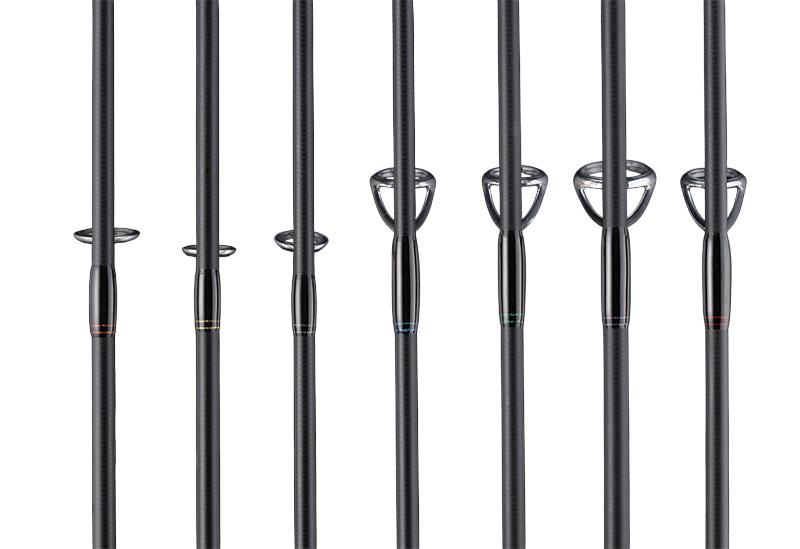 Модель состоит из двух секций, соединенных надежным штекерным способом. Прочный графитовый бланк оснащен кольцами с титановыми рамами - они легкие, долговечные и размещены так, чтобы нагрузка равномерно распределялась по всей длине удилища. Это снижает риск поломки при забросе и вываживании.